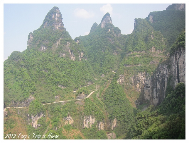 我們搭乘接駁公車,走剛才在纜車上看到的通天大道,繞啊繞的,