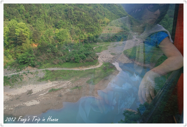 蜿蜒的河水,映照著車窗上同事大姐的倒影,還蠻有悠閒的fu