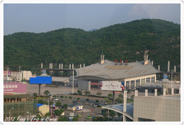 圖中偏右有弧形屋頂的建築,是張家界火車站......