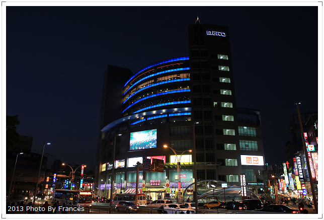 深藍色夜空、半圓形建築配上藍色燈光,突然讓我想到今年在大阪拍的Yodobashi大樓
